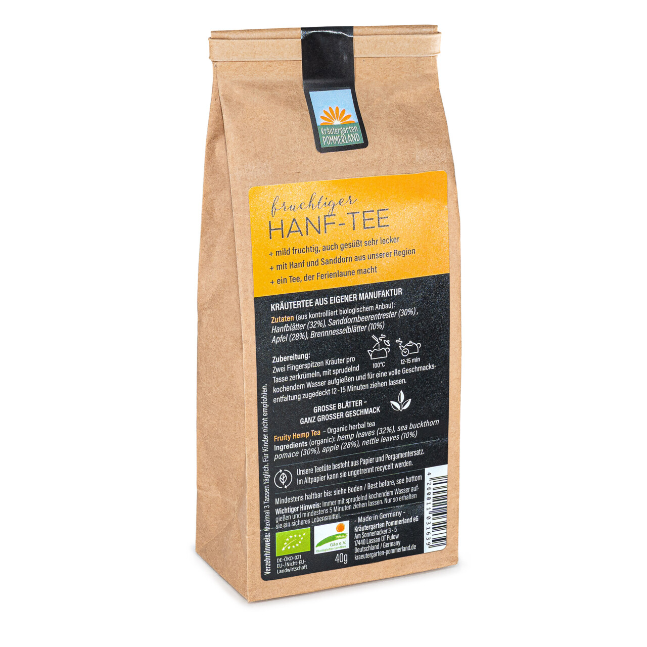| Lebensmittelbezeichnung | Hanf Frucht-Tee |