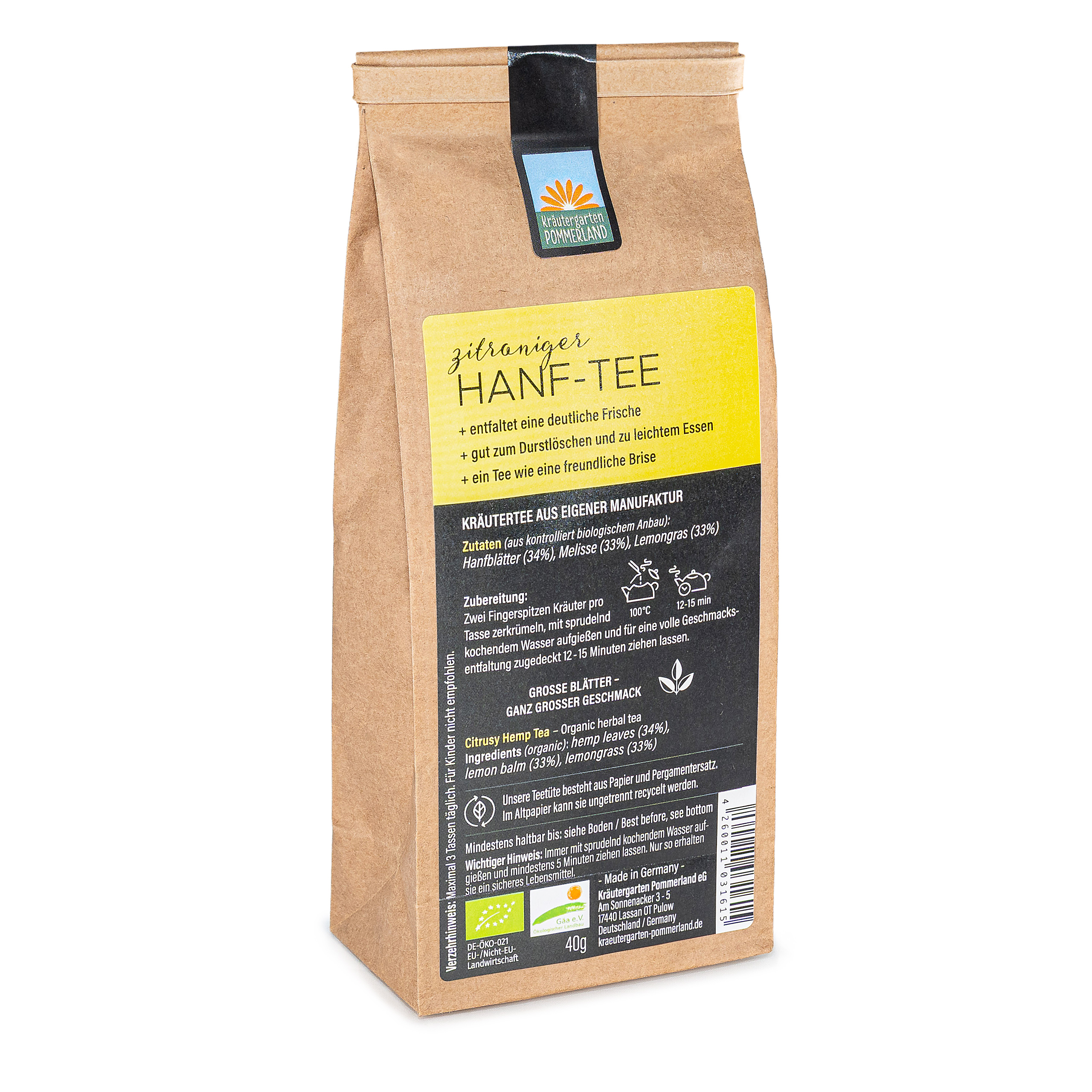 | Lebensmittelbezeichnung | Hanf Zitrone-Tee |
