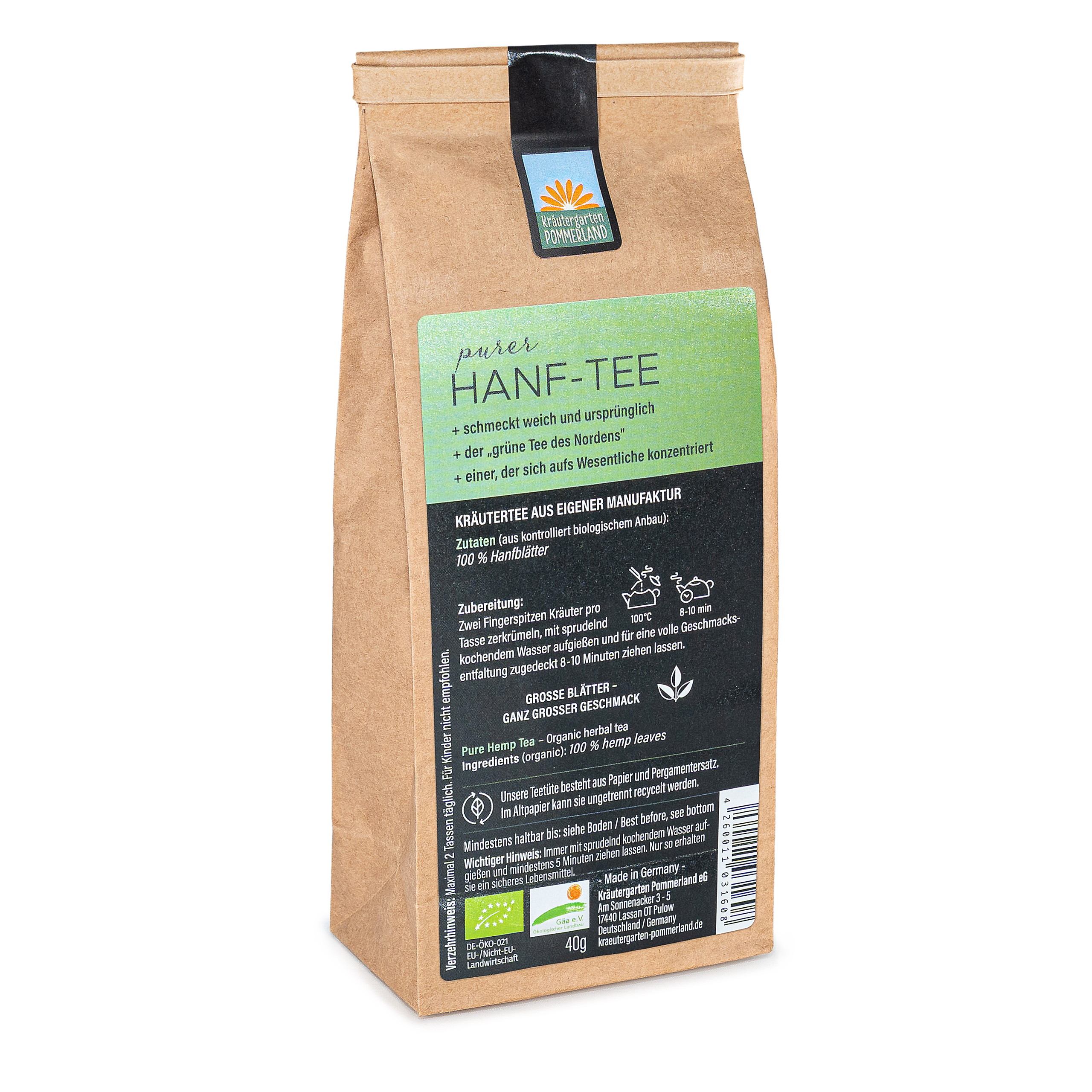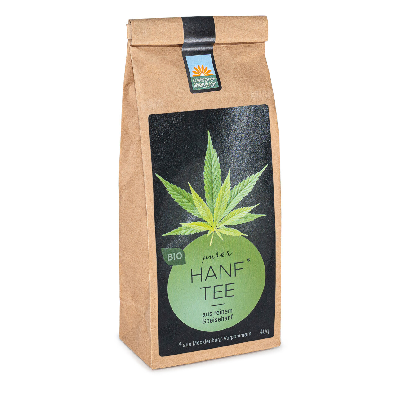 Der Bio-Nutzhanf für diesen Tee wurde auf Feldern in Mecklenburg-Vorpommern angebaut.